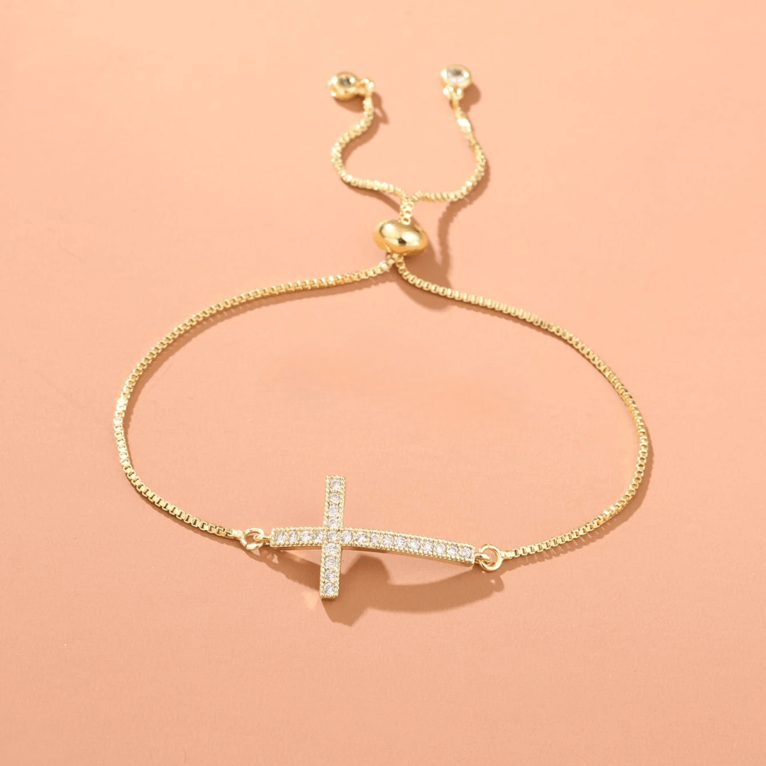 Gold Cross Bangle Bracelet