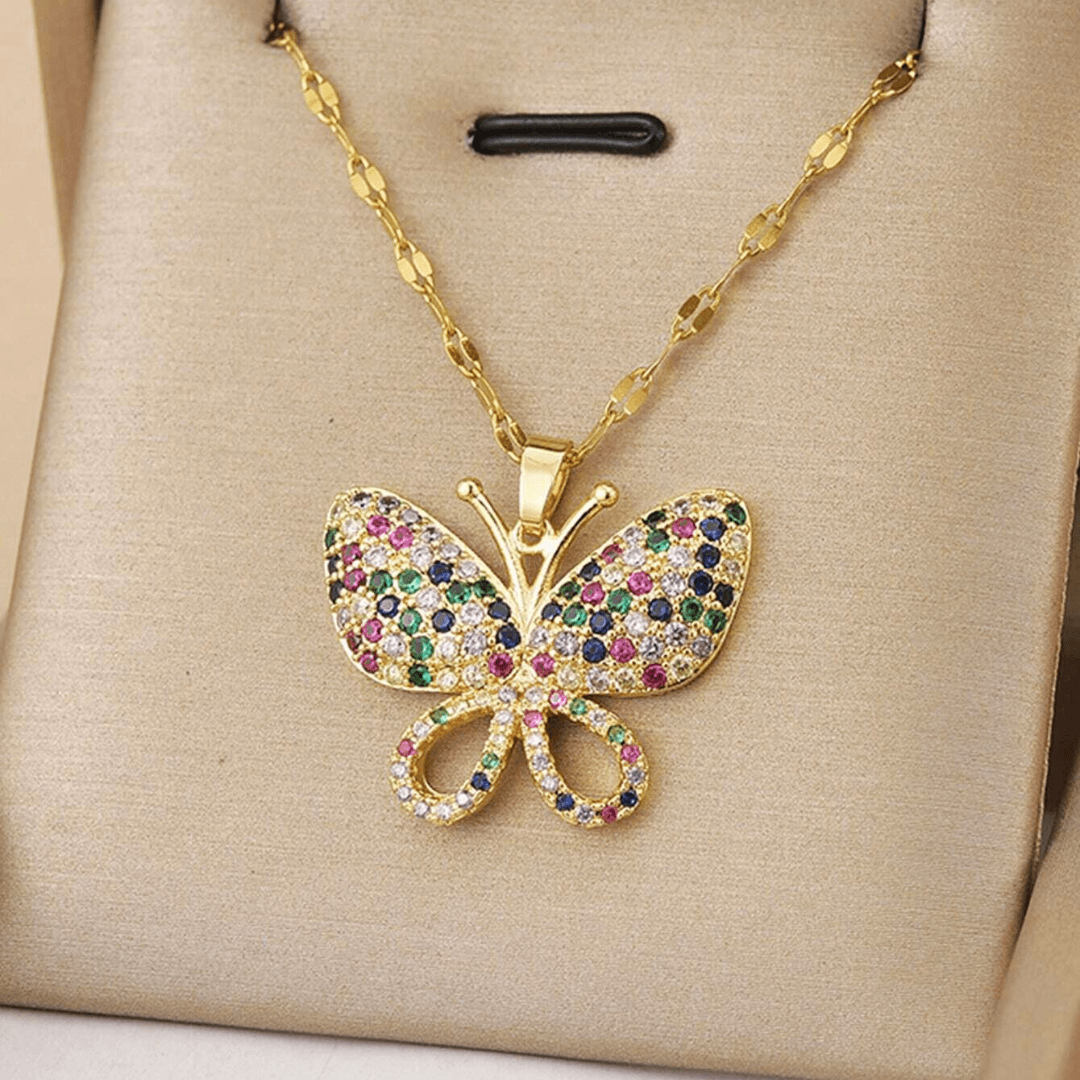 Add a splash of color and elegance with the Golden Rainbow Butterfly Necklace. Featuring a delicate butterfly pendant adorned with sparkling rainbow accents in a golden finish, this necklace symbolizes transformation, hope, and joy. Perfect for layering or wearing solo, it’s a vibrant and meaningful addition to any jewellery collection.